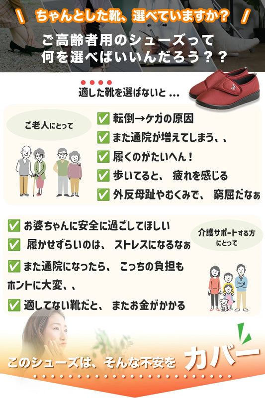 シニア世代ではありませんが、足の小指の骨にヒビが入り、治るまで普通の靴では痛むため購入しました。すぐに必要だったので、配送まで早く助かりました。