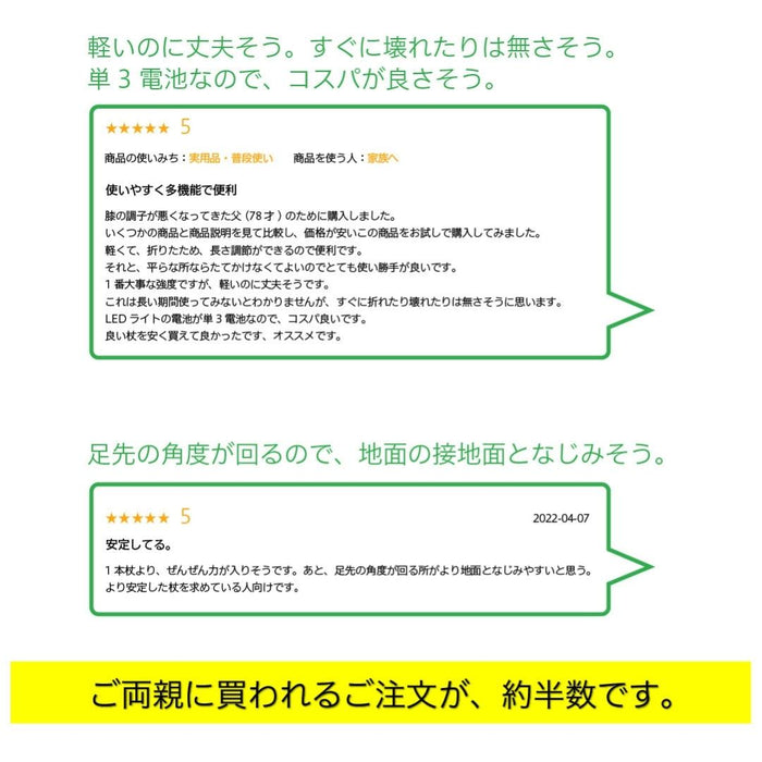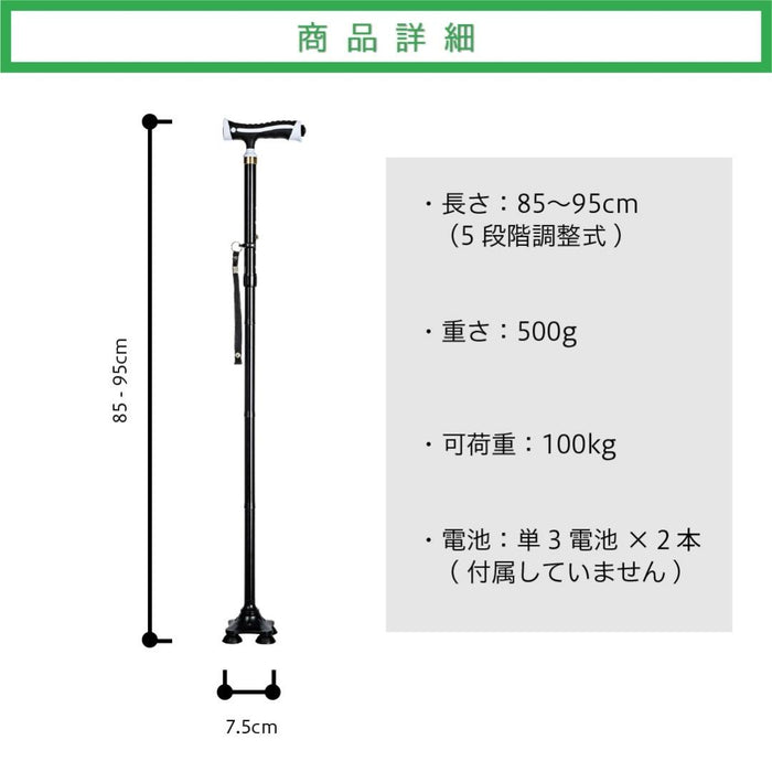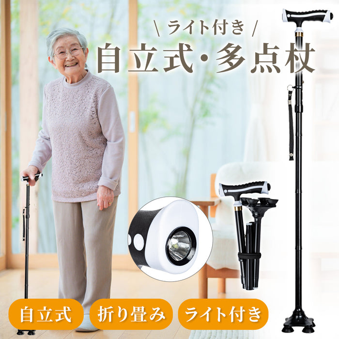 【耐久試験済み】強固で安全!! 自立式 杖 LEDライト付き 折りたたみ 四点杖 4点式