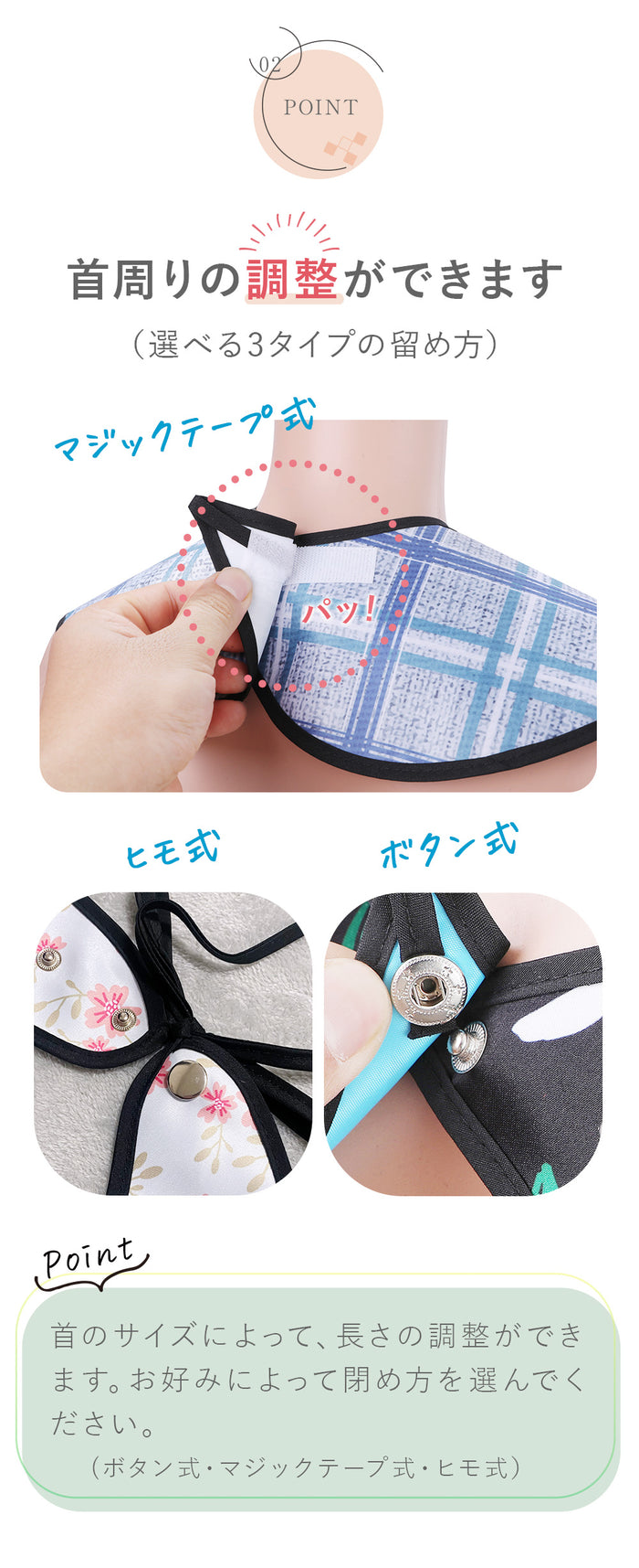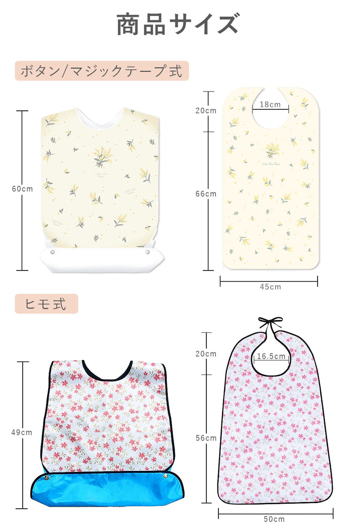 父が施設に入居、食事用エプロンが欲しいと言われ検索して購入しました。父は手に不自由さがあり、マジックテープで脱着できることが決め手になりました。大きさ、デザインともに満足してくれています。